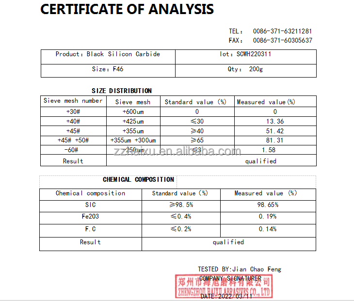 Composizione chimica di carburo di silicio nero
